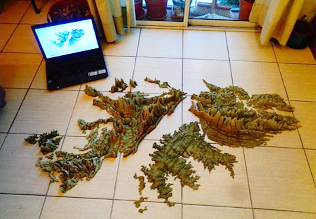 Marcelo Gonzalez reprodujo el disputado archipiélago con tecnología made in Rafaela para un museo marplatense, logrando un realismo impresionante